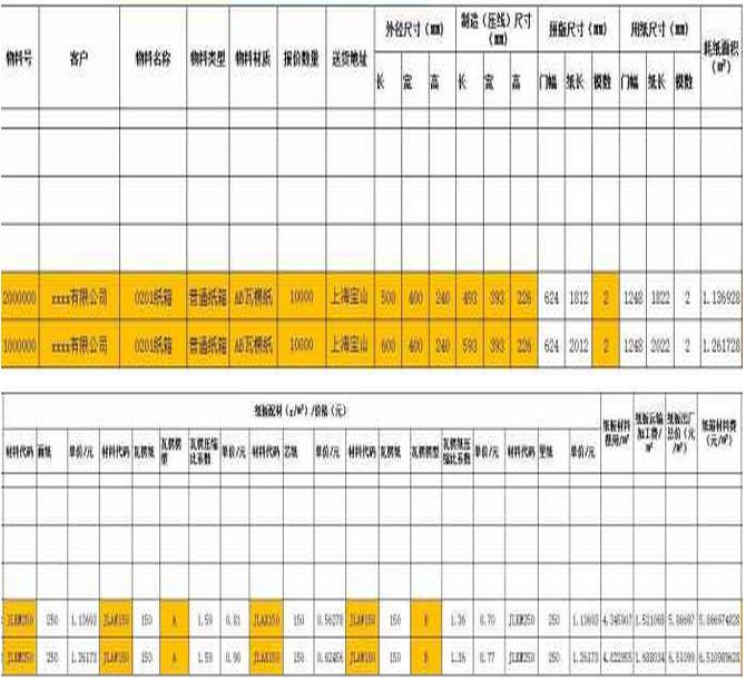 1,原纸价格改变时,只需要在数据库表格中修改对应纸价的吨位价,即可改变所有用此材料的纸箱价格。真正做到快速响应。